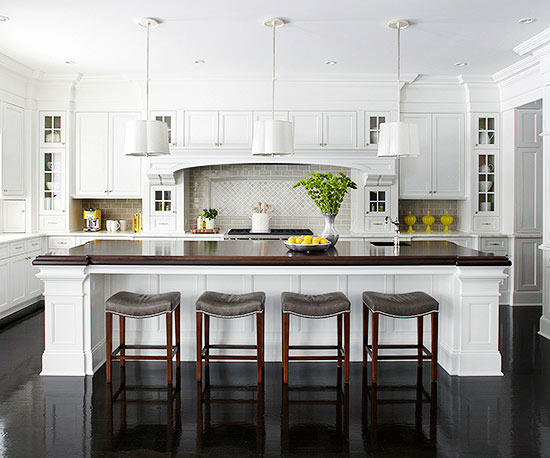 آشپزخانه یکدست سفید فضایی بسیار مناسب برای استفاده از عناصر رنگارنگ و ایجاد تضاد در دکوراسیون فراهم می کند. مدل کابینت شیشه ای از انواع کابینت ها با طرح های لوکس و متفاوت است که شما می توانید با نصب این کابینت ها دکوراسیون زیبا و مدرنی را در فضای آشپزخانه معاصر خود بوجود آورید. آشپزخانه هایی با سقف بلند و دکوراسیون آشپزخانه با کانتر آشپزخانه و کفپوش تیره به نور بیشتری نیاز دارند.